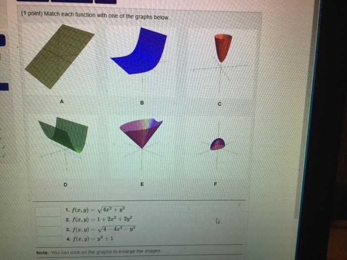 Solved Match The Function With Its Graph F X Y 1 1 Chegg Com